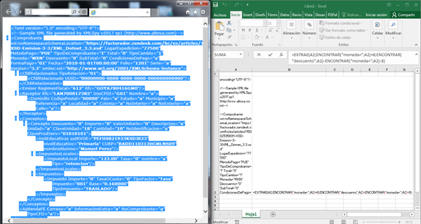Tengo un inconveniente, lo que pasa es que trato de poner el contenido de varios xml, cada uno dentro de una celda, esto lo hago para luego poder aplicarle una formula y extraerle información especifica, mi proceso es el siguiente, abro el xml en un bloc de notas, luego presiono CTRL+E, copio el contenido, y luego voy a mi excel y me ubico en la celda que quiero que contenga todo el texto del XML que copie, Presiono F2 en dicha celda, y luego pego todo el contenido, este proceso lo estoy haciendo pero me toma bastante tiempo ya que tengo listados de 500 o más XML de facturas a los cuales deseo extraer información precisa, si alguien me pudiese ayudar con algún método para poder mejorar mis tiempos le quedaría muy agradecido, les dejo unas imágenes para una mayor comprensión