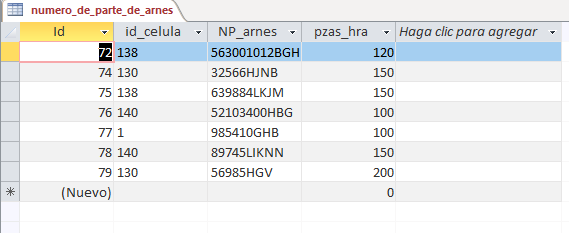 Esta es la otra tabla y lo que quiero saber es si se pudiera mostrar en el campo de Pzas_por_hora el numero mayor de las piezas ingresadas por decir de la célula 130 pues que en automático me ponga que el mayor es de 200 no se si mi pregunta sea clara y alguien me pueda orientar