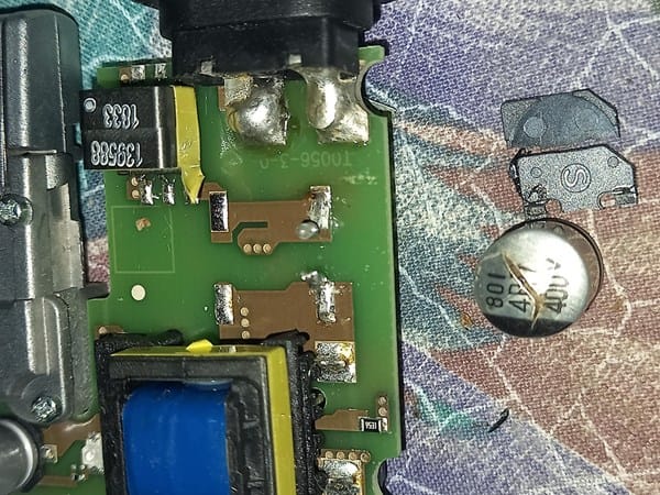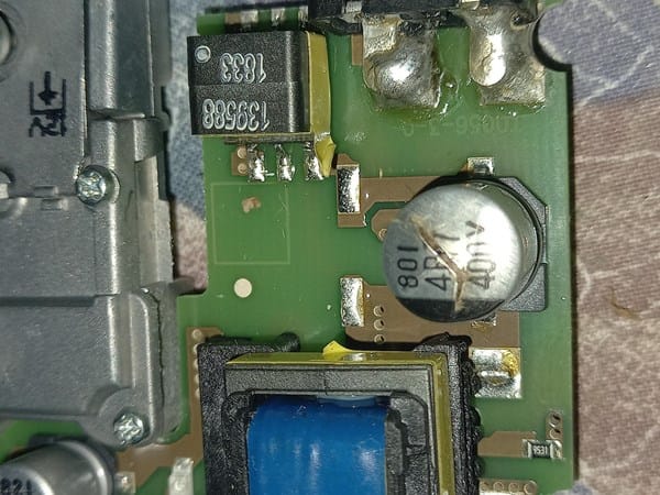 Tengo una fuente de alimentación de una antena de la marca Televés el problema es que ha dejado de funcionar seguramente por una subida de tensión en la red y tengo localizada la avería como podéis observar en las fotos hay un aparato que ha reventado a ver si me podéis decir donde puedo cómpralo y si se puede sustituir por uno nuevo para que vuelva a funcionar de nuevo.