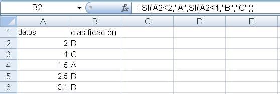 Coloque B, si dato es mayor o que 2 y menor que 4