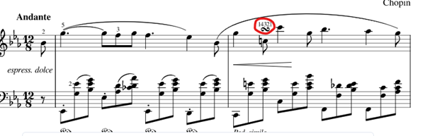 Que significa la S invertida con los numeros 14321(por ejemplo en la partitura de chopin - nocturne Op 9 No.2 de piano)