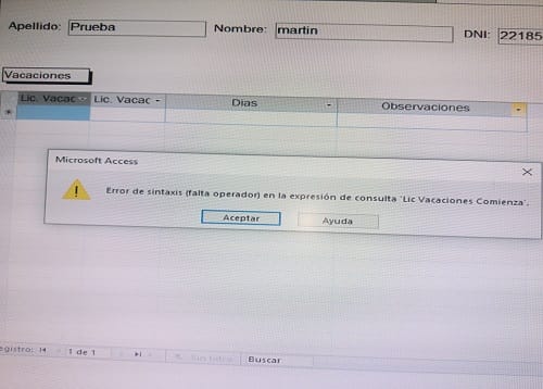 Cómo soluciono el siguiente error? "Error de sintaxis(falta operador) en La expresión de consulta