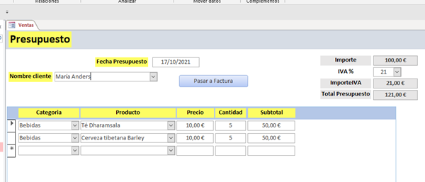 Quería pedir de su ayuda para saber como respecto a un problema que no me había dado cuenta. Hace un tiempo me ayudaron a crear un código para pasar todos los datos de un formulario presupuesto con su subformulario a el formulario factura de venta con su subformulario, pero como en el presupuesto no es necesario que se rebajen los artículos sino que solamente indica cuantos artículos de cada producto presupuestados hay, al momento de generar la factura me gustaría que se pudiera realizar el rebaje del stock de forma automática. Este seria el código que tengo, ¿qué tendría que agregarle para que al momento de pasar a factura me realice el rebaje de los artículos cargados y me los actualice en la tabla artículos?