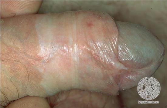 Liquen escleroso podría ser otro posible cuadro, en esta otra consulta si lo desea podrá ver tratado un caso muy similar al suyo, aunque por desgracia no llegó a responder alguien experto,