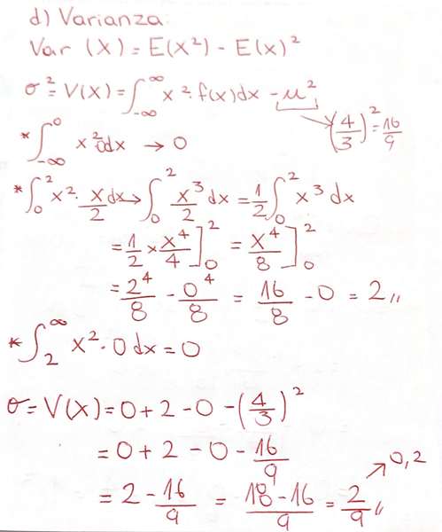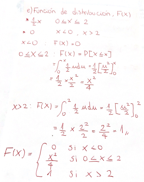 d) Calcular la varianza y la desviación típica de la función de densidad. E) Calcular la función de distribución de X, F(X).