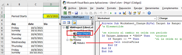 La macro se debe ejecutar cada vez que se cambia un periodo arriba para no usar ningún botón.