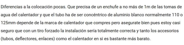 Es de vital importancia contar con tubos de extracción y expulsión de gases hacia el exterior de la vivienda. Hace falta un calentador de gas compatible con nuestra vivienda para una instalación adecuada si no, no podremos instalarlo y deberemos cambiar el calentador para que sí se adapte o hacer una reforma del espacio a utilizar.