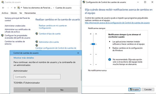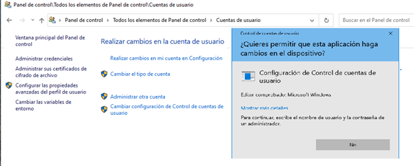 He intentado cambiar el nivel de control de las cuentas de usuario pero no me deja acceder al nivel de control y sigue saliendo esta ventana. Tapopoco me dejar modificar los controles de Windows defender