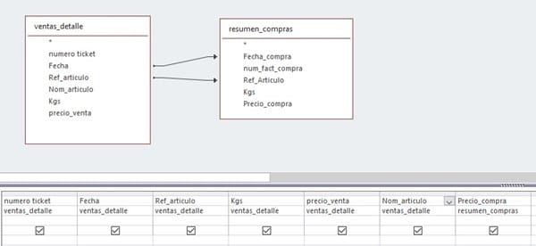Lo que pretendo hacer es una consulta cuyo resultado es tener todos los campos de la tabla de VENTAS y el campo del precio de compra de la misma fecha o fecha cercana de la tabla de COMPRAS, para así calcular el margen con el precio de compra correcto.