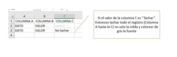 Excel: Tachar todo el registro dependiendo del valor de una celda