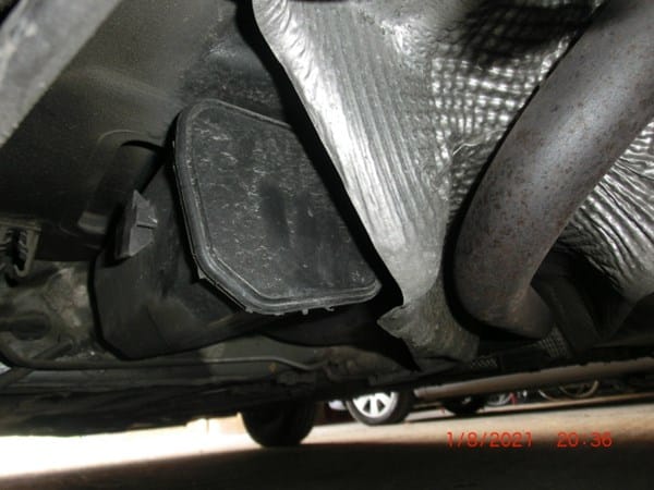 Se encuentra en la parte trasera, bajo el chasis. Adjunto fotos