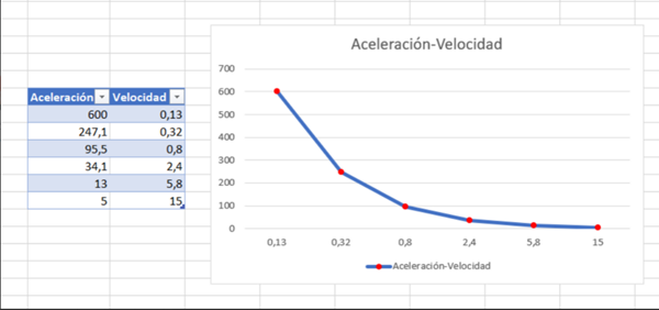 Siendo cada intervalo representado por una semirrecta decreciente, b seria la pendiente de esa semirrecta. Valor analitico = -0.44 m/s^2