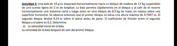 La velocidad del proyectil antes de impactar a M será: Vo = (12.010 / 0.010) x 3.71 = 4450 m/s aprox.