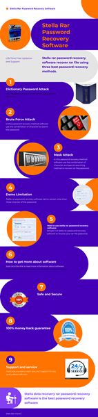 Stella win rar password recovery software is a powerful software that can recover all win rar file password with the help of three effective methods for recovering passwords. Stella Win rar password recovery software helps to retrieve all encrypted passwords of the Win rar file. This software helps to retrieve all versions 32bit or 64bit win rar file. Stella win rar password recovery software can recover all key combination win rar file.