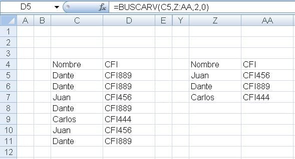 Estoy haciendo una aplicación donde se van a poner nombres de personas y empresas y en la columna de al lado el DNI o Cif, he usado la siguiente fórmula para no tener que estar escribiendo los cifs, si no que una vez tenga la primera vez puesto el nombre después se ponga automático