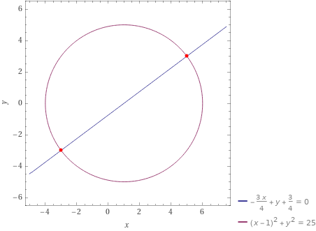 La recta y la circunferencia resultante las representas en un sistema de coordenadas: