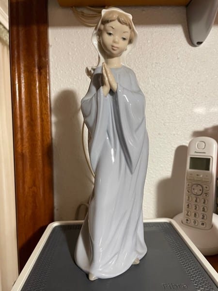 Tengo una Virgen de Nao by Lladró y quisiera saber su valor. Tiene una pegatina con el número565 02, también está grabado en la base C2-10 jun y varios caracteres que no reconozco. Mide 27 cm.