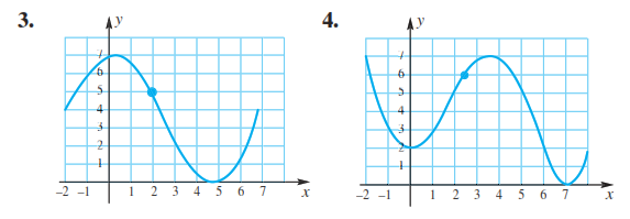 Cómo puedo encntrar la tangente a la curva que pasa por el punto indicado y estimar la pendiente, solo a través de estas gráficas.