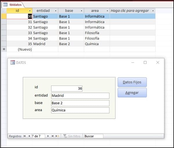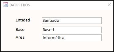 Ejemplo: entidad: santiago, Base: Base 1, área: informática... Estos datos quiero fijarlos y comenzar a llenar el resto de los campos y añadir un botón para cambiar área.