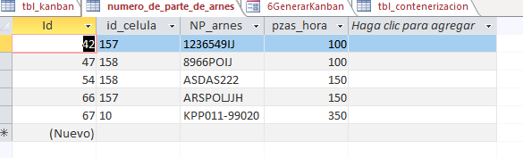 Por otro lado, en la tabla Numero_de_partes... el valor Idcelula se puede repetir, por eso en el formulario he transformado los controles en combinados para que elijas el valor que quieras. Por ejemplo