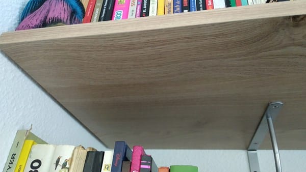 He instalado unas baldas de 19 mm en la pared de 140 x 40 poniendo dos escuadras a unos 35 cm de cada lado, creeis que podría partirse la melamina teniendo este voladizo, como se ve en la foto, sin soporte, ¿de 35 cm? Muchas gracias de antemano.