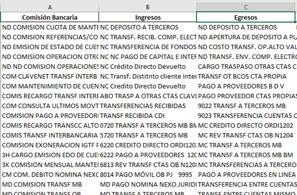 Nc deposito a terceros Nc transf. Recib. Comp. Electronica Nc transferencia de fondos nc nc pago de capital e intereses dep.plazo/vista nc crédito directo devuelto nc transf. distitnto cliente internet nc credito directo devuelto abo trasp a otras ctas clavene transferencias recibidas transf recibida cdi 0720 transf a terceros mb bm 5720 transf a terceros mb 6220 credito directo ordi1202 6222 pago a proveedores 1202 6813 rev transf ctas ob n1208 8014 pago móvil ob pj 9995 Md pago nomina nexo juridico Md transf a terceros mb Md transf cta otro banc Md transf cta otro bco cred Md transferencia cuentas ob Md transferencias a terceros Pago a terceros via internet Orden de pago Credito inmediato camara de compensacion Pago a proveedores en linea Pago a terceros via internet Pago movil comercial Pago movil comercial interbancario Transferencia entre cuentas Transf. Entre cuentas mismo titular-exent Abono por creditos directos Tranf. Entre ctas. Internet Nota credito x credito directo Tranf. Entre ctas. Internet transferencias cr cce tran: Transf. Tpbw . Teleservicios