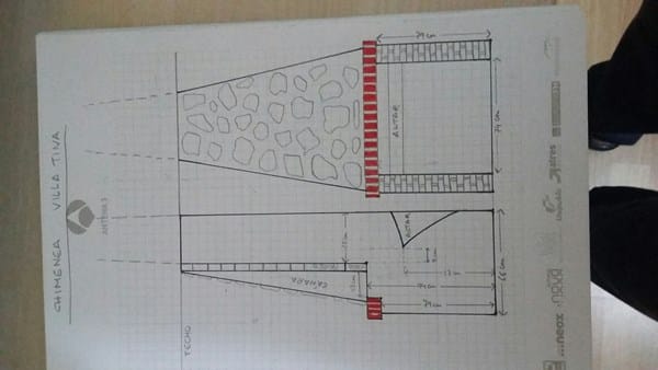 Soy nuevo en el foro y me gustaría exponeros el siguiente problema con mi chimenea. Se trata de una chimenea abierta, de obra, que revoca humo hacia la estancia donde se encuentra. Lo hace de forma intermitente, si abro ligeramente una ventana cercana observo que la combustión mejora. La casa se reformó hace poco y se ha mejorado mucho el aislamiento térmico. Sin duda que esto último no ayuda pero estoy seguro que antes de la reforma ya no funcionaba bien porque la cara externa del dintel estaba ennegrecida. Además, los anteriores dueños habían, de forma chapucera y errónea, pienso yo, agrandado la salida de humos por la parte superior del hogar, señal inequívoca que la cosa no iba bien. La chimenea se encuentra en un salón de unos 40 m2 y techos de altura media. Os adjunto un plano con las medidas y el diseño de la chimenea. Yo creo que tiene errores de diseño pero me gustaría que gente experta en el tema me diera su opinión. Muchas gracias