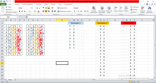 Mi idea es la siguiente que la distancia del numero inicial de la columna A con la columna B sea igual a la distancia entre la columna F y la columna G (FÓRMULA 1)