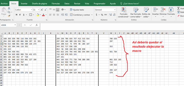 Me harían el grande favor de ayudarme con una macro, a manera de ejemplo adjunto la imagen, donde hay dos rangos de datos, el de la columna A:J y L:U, ambos rangos contienen números y en ocasiones hay valores repetidos en sus filas. En la columna W estaría el ejemplo de como seria el resultado de la macro, que consistiría en extraer los números repetidos en dicha fila y pegarlos a partir de esa columna, en el caso de la fila "2" se repiten en el rango los valores 780,033 y en la fila "3" solo el 297 y sucesivamente. Idea seria que al ejecutar la macro extrajera los datos y los pegara automáticamente hasta su ultima fila.