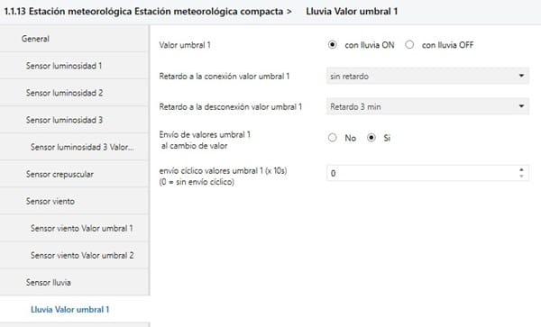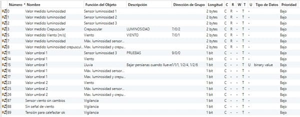 Entiendo de que sí lo estoy haciendo, ya que el objeto de comunicaciones del sensor de lluvia "Valor umbral 1 - Lluvia" es de 1 bit y se corresponde con el actuador de salidas (para las persianas) de 1 bit