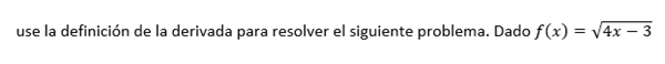 Por favor, ayuda de como encontrar la derivada utilizando la definición.