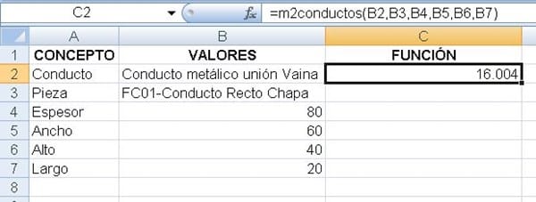 Crear función en Excel que realice unos cálculos en función de los valores de las celdas seleccionadas.