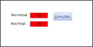 Tengo un formulario en access donde tengo diseñado 2 cuadros de texto(inicial y el otro final) y un botón de ejecutar para que me cumpla la función de que al yo llenar estos cuadros de texto con números me actualice una base de datos. Mi duda es que quisiera mediante un código vba en access el cuadro de texto(inicial como el final) me busque el numero en la base de datos y si este no se encuentra detenga el procedimiento, me ponga el rojo el cuadro de texto y me ponga el cursor en ese cuadro de texto que me origino el problema(ya sea en el inicial o en el final), o sea lleno el cuadro de texto inicial con un numero por luego el cuadro final con otro numero por, al presionar el botón ejecutar primero me busque el numero introducido en el cuadro de texo inicial si esta que pase al cuadro de texto final; si no esta que se detenga el código, me ponga ese cuadro de texto en rojo y me coloque el cursor, este mismo procedimiento suceda con el cuadro de texto final, si los dos están correctos entonces que me ejecute la consulta de actualizar
