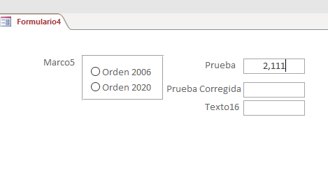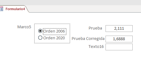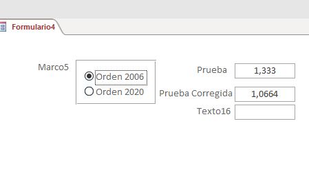 Tengo en un formulario insertado un grupo de opciones (Marco5) una opción llamada Orden2006 y otra opción llamada Orden2020.