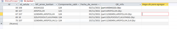 Esta es mi tbl_kanban donde en el campo QR_info esta calculado pero me falta saber el como podria agregar la cantidad que esta en mi tbl_celulas que se llama pzas_hora_max, intente hacerlo desde la consulta donde tengo varias tablas con los datos necesarios pero no puedo concatenarlos puesto que son de distintas tablas, no se si se pueda jalar de la tbl_celulas a tbl_kanban segun el id_celula pero no se como hacerlo espero me puedan ayudar o orientar un poquito
