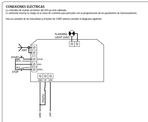 Resulta que quiero poner un dispositivo "inteligente" que a través del wifi pueda abrir o cerrar la puerta del garaje. Revisando las instrucciones veo que este dispositivo (mediante dos cables) debe conectarse al motor a través de la entrada de un pulsador de pared. Actualmente yo solo lo abro con mando, es decir no tengo un pulsador de pared. Revisando las instrucciones del motor (en mi caso es el motor JEDI de v2), no me queda claro donde debo conectarlo y por eso os solicito ayuda.