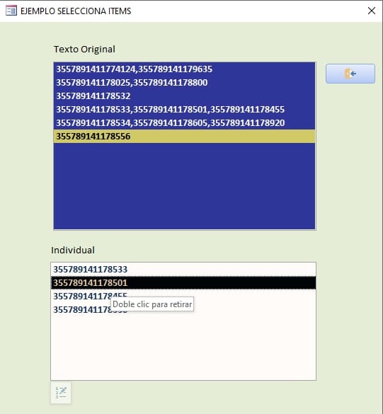Ahora, si hago Doble clic me retira el elemento y obtengo: