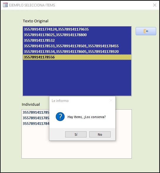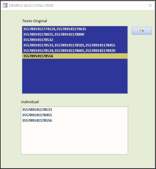 Observe cuando hago clic se pasan al siguiente cuadro de lista el campo desglosado. Si hago clic en otro elemento del cuadro de lista principal, obtengo la siguiente pregunta.