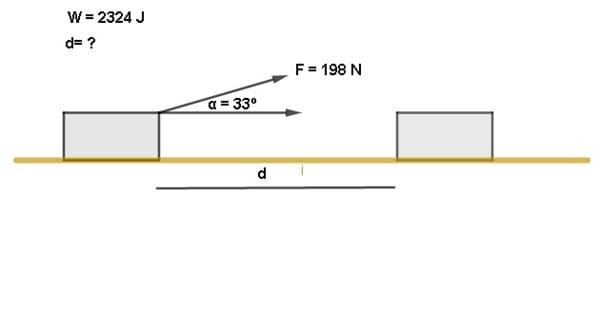 El problema dice lo siguiente : Un robot industrial empuja un bloque de hormigón por una superficie horizontal, con una fuerza constante de 198 N que forma un ángulo de 33º hacia abajo con respecto de la horizontal.
