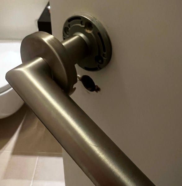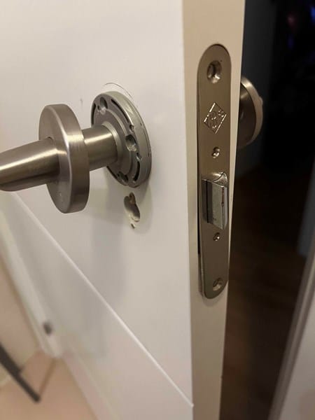 En esta foto se ve el hueco que digo, meto llave Allen pero ningún tamaño entra y no parece haber tornillo Allen adentro, tengo 7 puertas y todas estas igual.