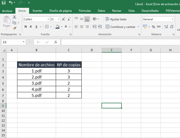Este sería un listado de archivos a copiar con su respectivo nombre y su numero de copias: