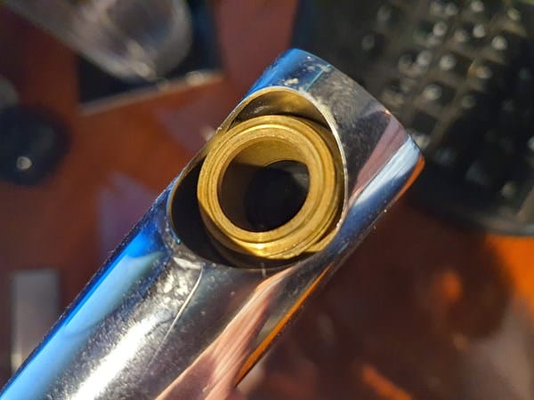 La cabeza del grifo esta formada por un cilindro, dentro una pieza de plástico negro y luego otro cilindro donde se conecta la manguera.