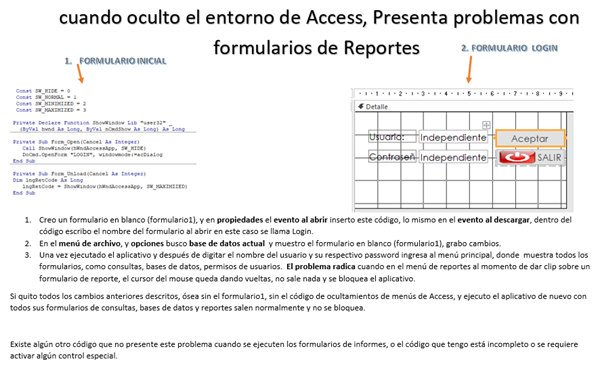 Tengo problemas cuando oculto los menús de access, con los formularios de reportes