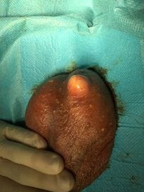 Por otro lado y al mismo tiempo, los quistes epidérmicos o epidermoides también llamados quistes queratínicos y quistes sebáceos escrotales, son compatibles con su episodio. Con frecuencia se originan de un folículo pilosebáceo. Estos quistes contienen queratina y lípidos.