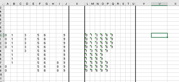 Básicamente lo que hace la macro es copiar lo del rango de las columnas "A y J" y pegarlo apartir de la columna "L" eliminando las celdas en blanco. Y lo hace a todo el rango completo, osea hasta la ultima fila que este con datos, en la imagen que coloco arriba de la macro es como da el resultado.