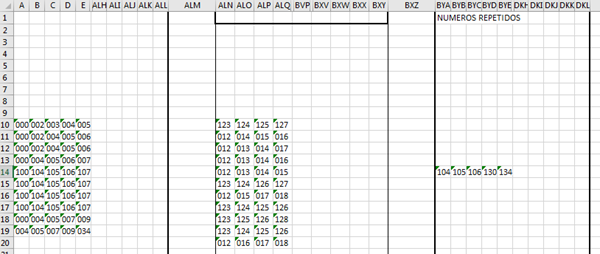 End SubHola buena tarde. Por favor solicito nuevamente ayuda para modificar esta macro. actualmente trabaja de la siguiente manera.. Como ven en la imagen anterior. La macro compara los numeros de los dos primeros rangos, columnas "A y BXY" y pega los números repetidos a partir de la columna BYA.