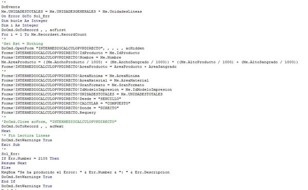 En el momento que elimino la instrucción de cerrar el form: INTERMEDIOCALCULO dentro del: for .. Next me da el error 438.