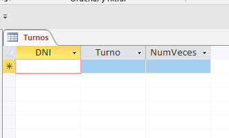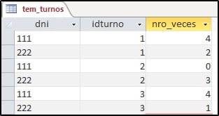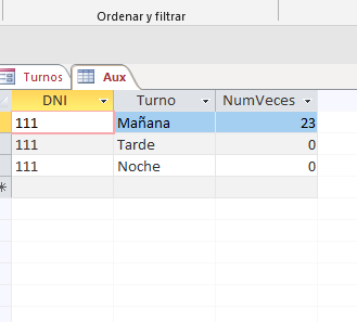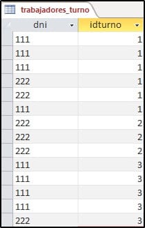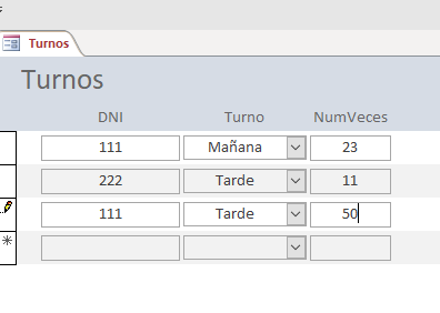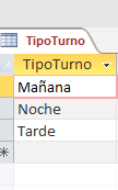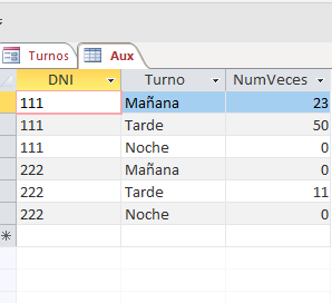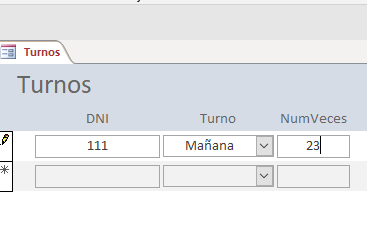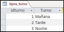 Aquí si quieres puedes ponerle un Id. Y tengo una tabla Aux exactamente igual. Con la tabla Turnos construyo un formulario