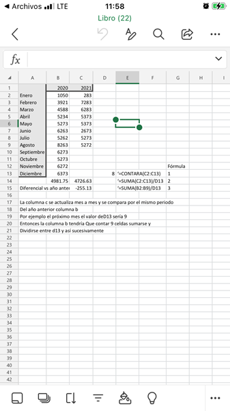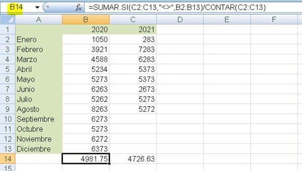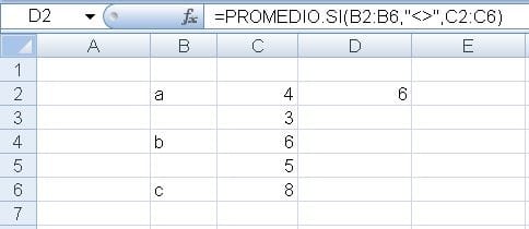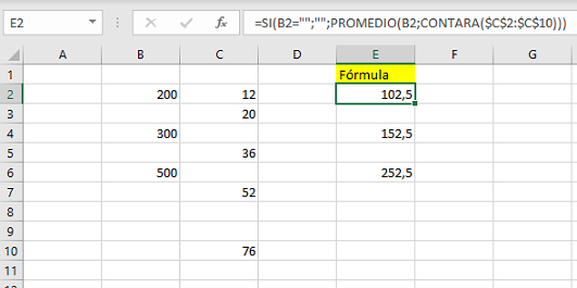 En Excel cual sería la fórmula para Que la columna b cuente las celdas Que tengo con datos en la columna c y promedie Por ese numero