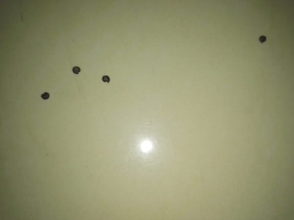 Encontré estas heces dentro de la casa y estoy preocupado. No sé que animal sea, alguien puede identificar de que roedor, ¿o reptil es?